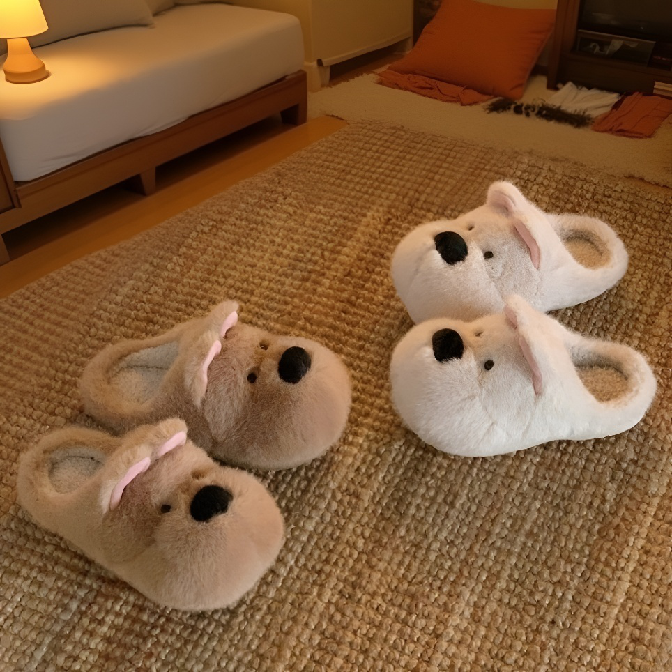 滑り止め加工された底面のもこもこスリッパ